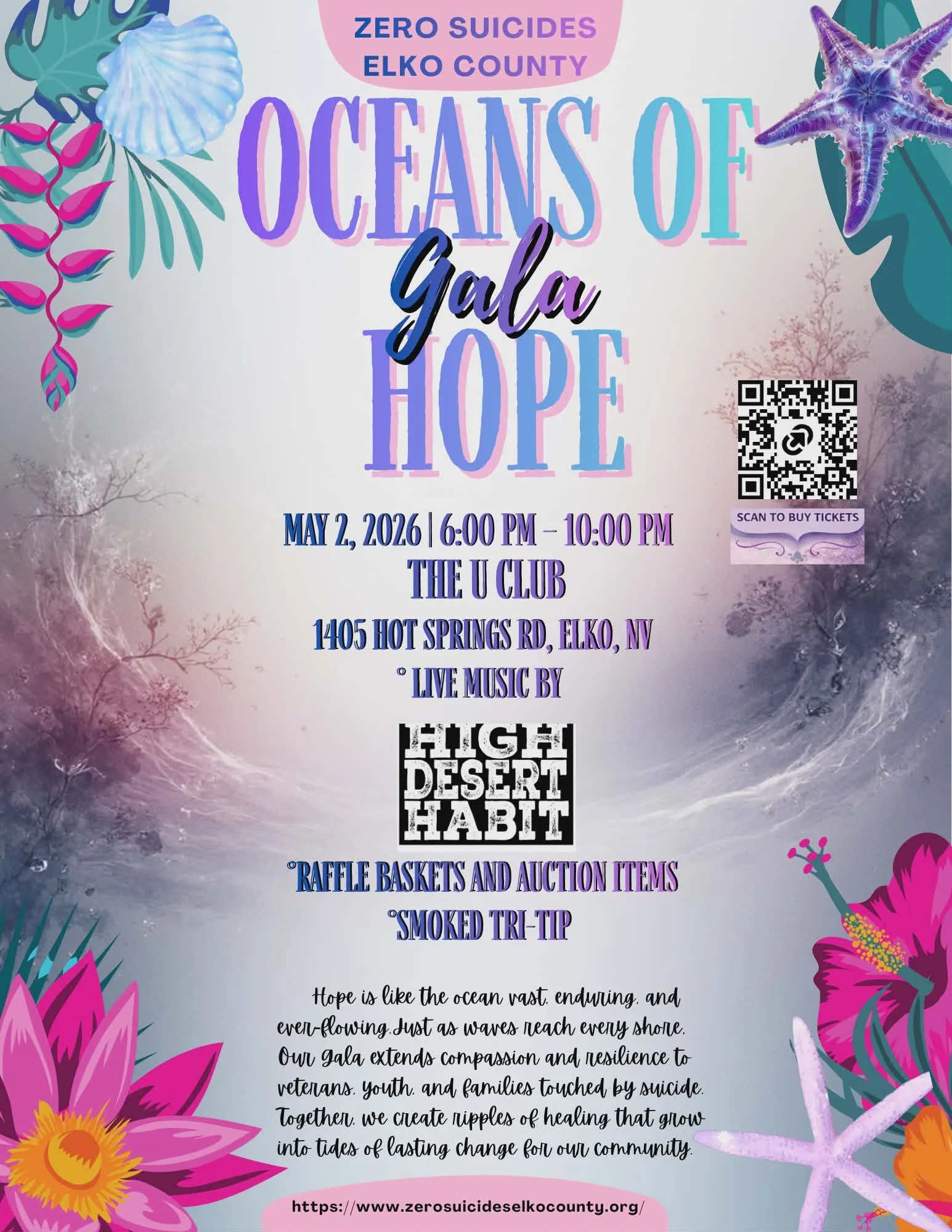 Join us for a powerful evening of community, compassion, and purpose at the Oceans of Hope Gala, hosted by Zero Suicide Elko County. This annual event is more than a fundraiser—it’s a movement of healing and hope.